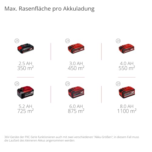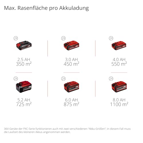 Einhell Akku-Rasenmäher RASARRO 36/42 Kit Power X-Change (36V, 42 cm Schnittbreite, bis 725 m², Brushless, 50L Fangkorb, Mulchfunktion, inkl. 2x 5,2Ah + 1x Twincharger)