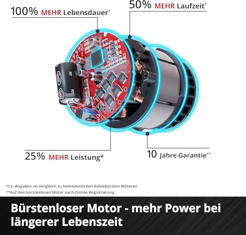 - Wartungsfreier Brushless-Motor sorgt für längere Laufzeiten und mehr Leistung