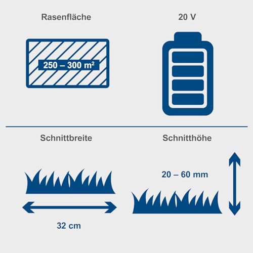 - Leistungsstarker 20V Brushless Motor mit 32 cm Schnittbreite
