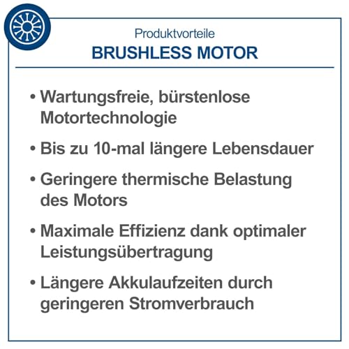 - Hohe Effizienz durch bürstenlosen Motor