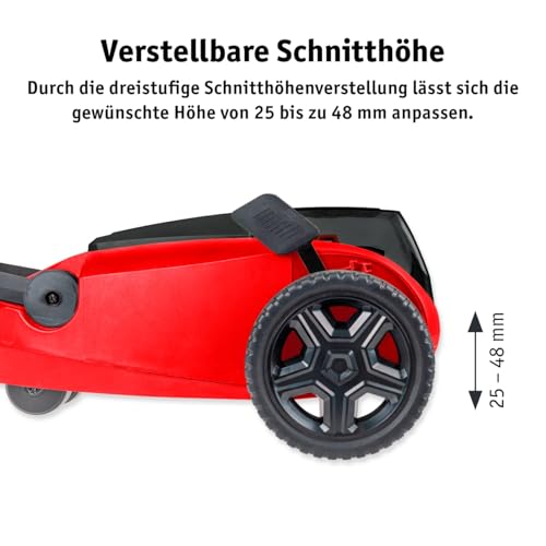 Die Mähqualität ist durch die wählbare Schnitthöhe von 25 bis 48 mm optimiert, sodass du je nach Bedarf und je nach Grashöhe das richtige Mähergebnis erzielen kannst. Diese Flexibilität ist gerade für unterschiedliche Rasenbedingungen von Vorteil.