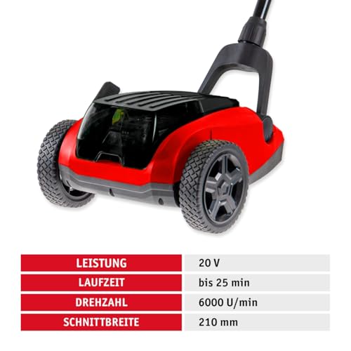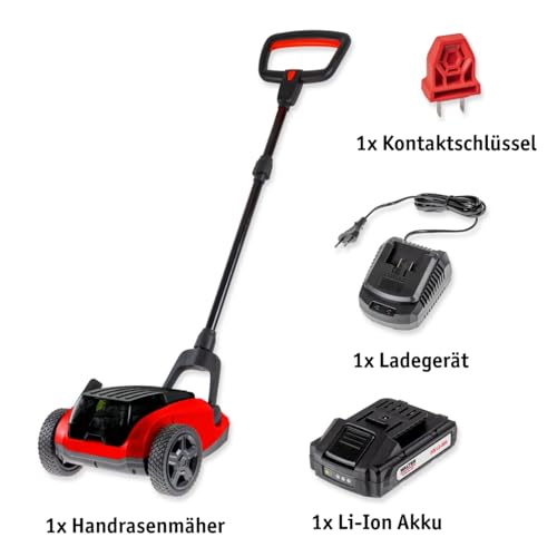 Der WALTER Akku-Handrasenmäher wird mit einem 20V 2,0Ah Li-Ionen-Akku geliefert, der eine Laufzeit von 20-25 Minuten bei voller Ladung bietet. Diese Akkulaufzeit ist für kleine Rasenflächen ausreichend und ermöglicht eine zügige und effektive Rasenpflege.