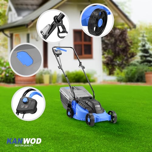 Kanwod KGALM-1232 Rasenmäher Elektro 1200 W, 34 cm Schnittbreite, 30 Liter Grasfangkorb, 3-stufige Schnitthöhenverstellung 30-70 cm, 3400 U/min, empfohlen für Rasenflächen bis 500 m²