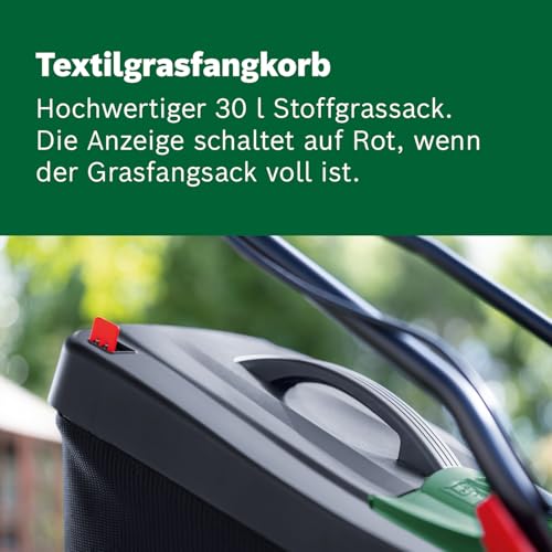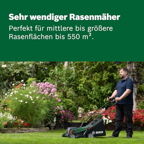 Ein herausragendes Merkmal des Bosch Rasenmähers ist die Benutzerfreundlichkeit. Die Ergoflex-Handgriffe sind ergonomisch gestaltet, sodass der Rasenmäher auch über längere Zeiträume einfach zu bedienen ist. Dies reduziert die Ermüdung der Hände und sorgt für mehr Kontrolle während der Arbeit.