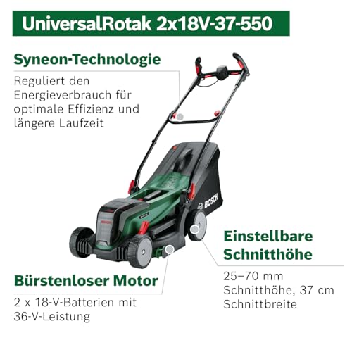 Bosch Akku-Rasenmäher UniversalRotak 2x18V-37-550 (bis zu 500 m2; 18 Volt System; Schnittbreite: 37 cm; ohne Akku und Ladegerät)