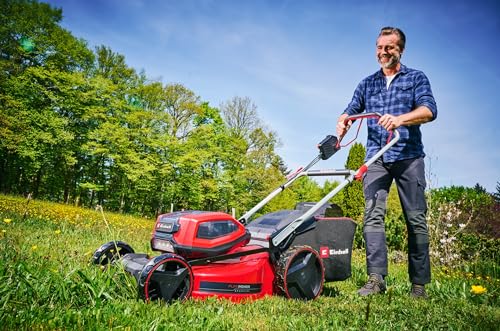 Der Einhell Akku-Rasenmäher ist einfach zu bedienen. Mit seinem Selbstantrieb und der variablen Geschwindigkeitsregelung wird das Mähen selbst in schwierigen Situationen, wie bei hohem Gras oder Steigungen, erheblich erleichtert.