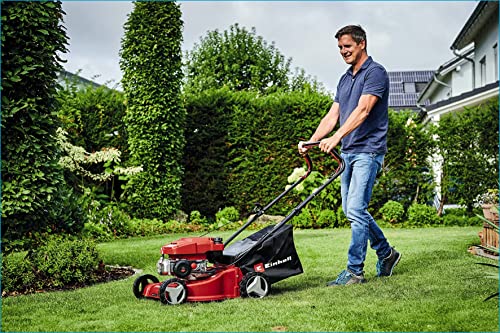 Der Einhell Rasenmäher zeichnet sich durch eine benutzerfreundliche Handhabung aus. Der klappbare Führungsholm ermöglicht eine platzsparende Lagerung, was besonders in kleinen Gärten von Vorteil ist. Zudem ist der Startseilzug gut erreichbar, was einen schnellen und mühelosen Start ohne anstrengendes Bücken ermöglicht.