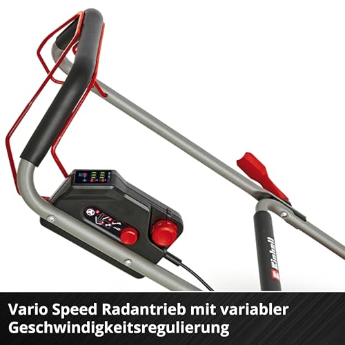 Die Handhabung des Rasenmähers ist durch den Radantrieb und die variablen Geschwindigkeitsstufen sehr komfortabel. Dies erleichtert die Fortbewegung im Garten, insbesondere auf unebenen Flächen oder in hohem Gras. Die zentrale Schnitthöhenverstellung bietet zahlreiche Optionen, sodass du den Rasen ganz nach deinen Wünschen trimmen kannst.