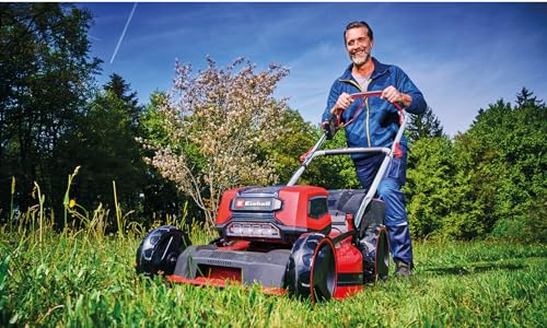 Einhell Akku-Rasenmäher GP-CM 36/47 S Li BL Kit Power X-Change (36 V, 47 cm Schnittbreite, bis 700 m², Brushless, 65 L Fangkorb, Radantrieb, inkl. 4x 4,0 Ah + 2x Twincharger)