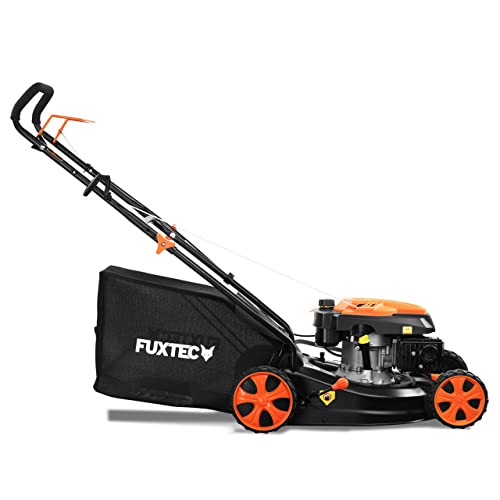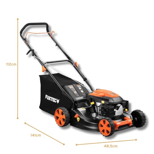| Features | LEISTUNGSSTARK: 3,5PS Benzin Rasenmäher von FUXTEC mit starkem 4-Takt 146ccm Motor mit original französischem GT-Getriebe für kleine bis mittelgroße Flächen. Inklusive Easy Start Funktion für ein einfacheres Starten des Seilzugstarters., 3IN1 MÄHER: Mähen, Fangen & Mulchen. Dank der Schnittbreite von 46cm auch für Flächen von 400 bis 1.000m² geeignet. Bequem abnehmbarer 50l Grasfangkorb., WENIG UND EFFIZIENT: Durch sein Gewicht von 27kg und der Schnittbreite von 46cm ist der Mäher auch für verwinkelte Flächen geeignet Mit 2,6KW Leistung und Frontbumper mit integriertem Tragegriff., HOCHWERTIG UND ROBUST: Robustes Stahlblechgehäuse und hochwertig geschliffenem Mulchmesser aus Spezialstahl. Kugelgelagerte Big Wheel Räder 255mm hinten und 175mm vorne für ein besseres Fahrgefühl auch auf unebenem Gelände., VERSTELLBARE SCHNITTHÖHE: zentrale, 7-Stufige Schnitthöhenverstellung von 25-75mm. Einfaches Umstellen durch einen integrierten Hebel. Zeitsparende Einstellung für ein ideales Mähergebnis. |