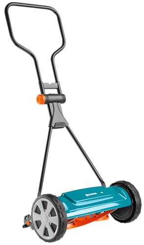 | Features | Feiner Rasenschnitt: Die Messerwalze und das Untermesser aus gehärtetem Qualitätsstahl ermöglichen einen präzisen Rasenschnitt wie mit einer Schere, ideal geeignet für kleinere Gärten bis zu 200m² Mähfläche, Kraftsparend und leicht zu handhaben: Dank der berührungslosen Schneidetechnik ist der Spindelmäher besonders geräuscharm und leicht zu schieben, Einfache Aufbewahrung: Das Gestänge lässt sich zusammenklappen, so dass der Spindelmäher platzsparend aufgeräumt werden kann, Einfach zu reinigen: Die Messerwalze ist antihaftbeschichtet und verhindert so lästiges Antrocknen von nassem Gras, Lieferumfang beinhaltet: 1x Gardena Classic Spindelmäher 400 |