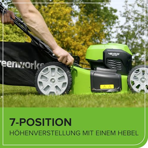 Greenworks 48V (2x24V) Selbstfahrender Akku Rasenmäher für große Flächen bis zu 480m², 46cm Schnittbreite, 55L Sack PLUS zwei 4Ah-Akkus und Doppelladegerät GD24X2LM46SPK4X