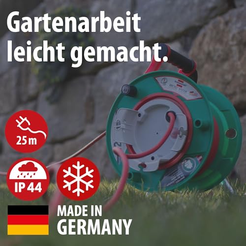 Brennenstuhl Garant G IP44 Gartenkabeltrommel (Kabeltrommel für Rasenmäher mit 23+2m Kabel in rot, Spezialkunststoff, kurzfristiger Einsatz im Außenbereich, Made in Germany)