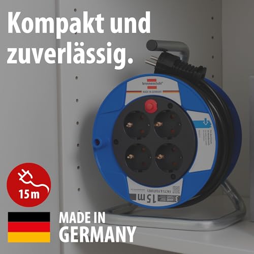 Brennenstuhl Garant Kompakt Kabeltrommel/Kabeltrommel mit 4 Steckdosen (15m Kabel in schwarz, aus Spezialkunststoff, Made in Germany)