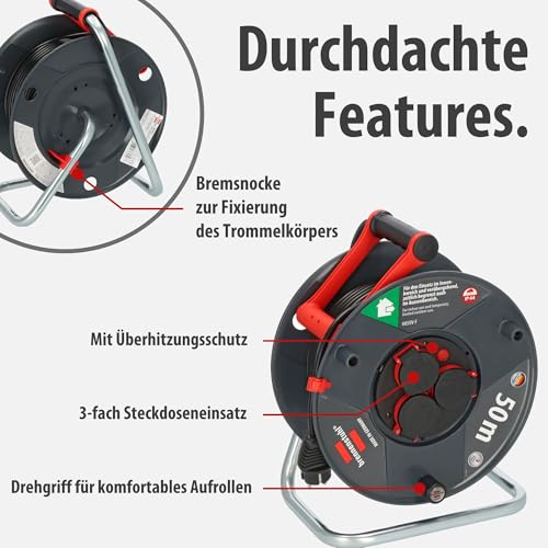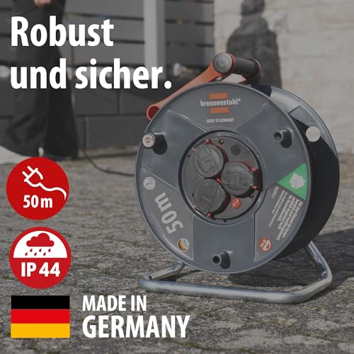 Brennenstuhl Garant V2 IP44 Kabeltrommel 50m outdoor (Made in Germany, 3 Schutzkontakt-Steckdosen mit erhöhtem Berührungsschutz, Spezialkunststoff)