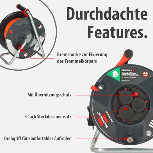Die Brennenstuhl Kabeltrommel bietet durch den integrierten Überhitzungsschutz eine hohe Sicherheit. Dies ist besonders wichtig, wenn das Gerät über längere Zeiträume hinweg genutzt wird, da dies das Risiko von Überhitzung und eventuell Brandgefahr signifikant verringert.