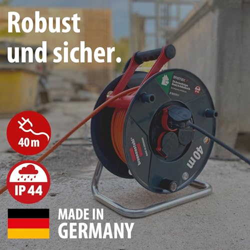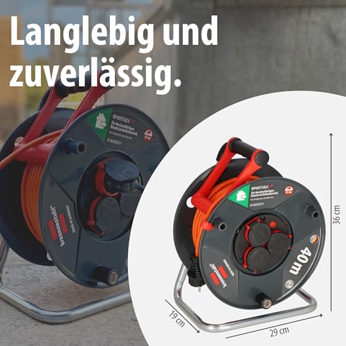 Brennenstuhl Garant V2 IP44 Kabeltrommel 40m outdoor (Made in Germany, 3 Schutzkontakt-Steckdosen, Überhitzungsschutz, kurzfristiger Einsatz im Außenbereich)