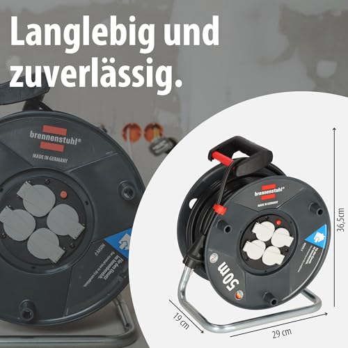 Brennenstuhl Garant V2 Kabeltrommel 50m Kabel (Made in Germany, 4 Schutzkontakt-Steckdosen, Überhitzungsschutz, Trommelkörper aus Spezialkunststoff)