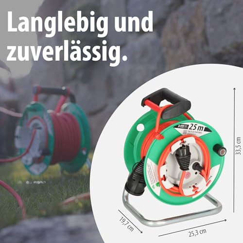 Brennenstuhl Garant G IP44 Gartenkabeltrommel (Kabeltrommel für Rasenmäher mit 23+2m Kabel in rot, Spezialkunststoff, vorübergehende und zeitlich begrenzte Verwendung im Freien, Made in Germany)