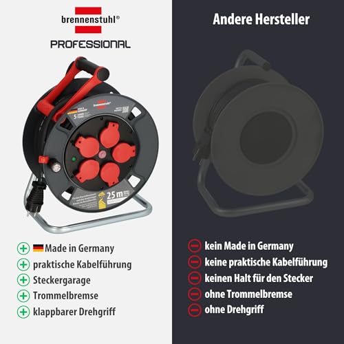 Brennenstuhl Professional Kabeltrommel 300 KU 2200 (25m Kabel in schwarz, aus Spezialkunststoff, Baustelleneinsatz und ständiger Einsatz im Außenbereich, Made in Germany)
