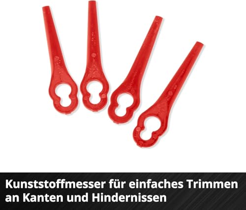 Mit einer Schnittbreite von 24 cm bietet der Rasentrimmer eine ausreichende Fläche, um auch größere Bereiche effizient zu bearbeiten. Die mitgelieferten Kunststoffmesser sind scharf und sorgen für einen sauberen Schnitt, während der Flowerguard deine Blumen und Zierpflanzen vor Beschädigungen schützt.