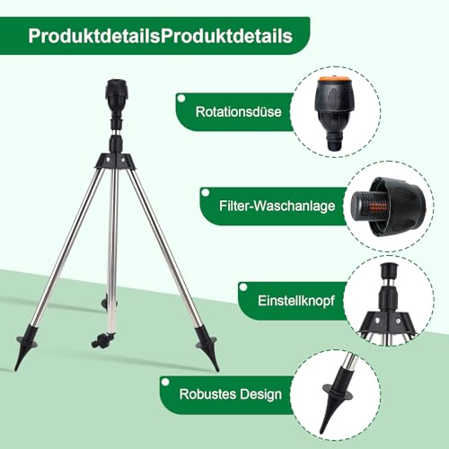 Der EvcgoX Rasensprenger ist höhenverstellbar und sorgt mit seiner 360°-Drehung für gleichmäßige Bewässerung großer Flächen. Einfach anzuschließen, perfekt für deinen Garten oder Gemüsebeet. Reduziere den Aufwand beim Gießen im Sommer!