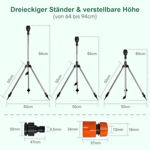 Die Möglichkeit, die Höhe des Sprinklers individuell anzupassen, ist besonders vorteilhaft. So kann der Nutzer die Wassersäule optimal an die Bedürfnisse seiner Pflanzen anpassen, was eine effiziente und gezielte Bewässerung gewährleistet.