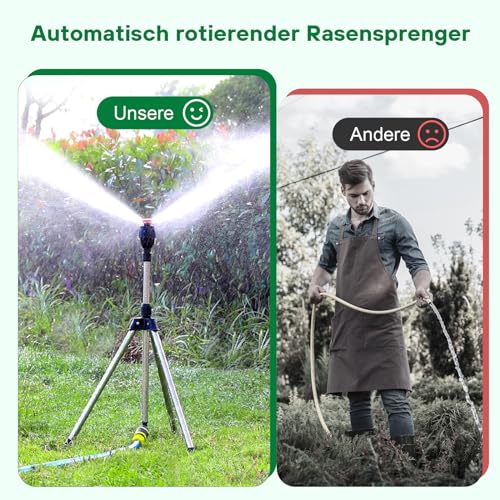 Im Vergleich zu herkömmlichen Sprinklern, die oft nur einen begrenzten Bereich abdecken, bietet der EvcgoX Rasensprenger durch seine Rotation und die verstellbare Höhe ein viel besseres Bewässerungsergebnis. Du wirst feststellen, dass Pflanzen gleichmäßiger befeuchtet werden, was das Pflanzenwachstum fördert.