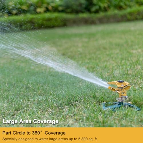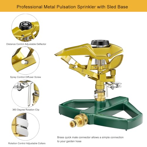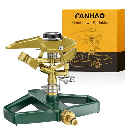 FANHAO Rasensprenger mit Metallsockel, Pulsationssprenger, Impulsprenger zur Bewässerung Flächen bis 540 m², 360° drehbar für große Flächenabdeckung