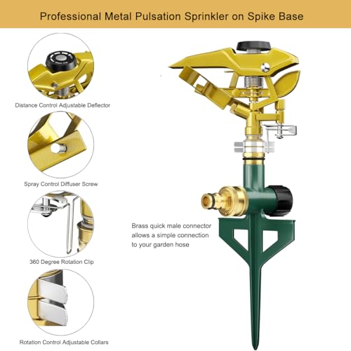 FANHAO Robuster Rasensprenger auf Erdspieß, Pulsationssprenger aus Metall, Impulsprenger zur Bewässerung Flächen bis 790 m², 360° drehbar für große Flächenabdeckung