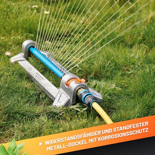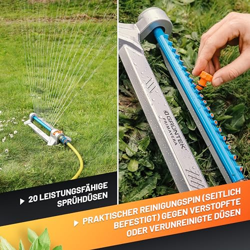GRÜNTEK Metall Oszillations-Rasensprenger, Beregner mit flexiblem Bewässerungsbereich, Rasen-Sprenger, Sprinkler mit Turbo-Motor, bis 352 m²