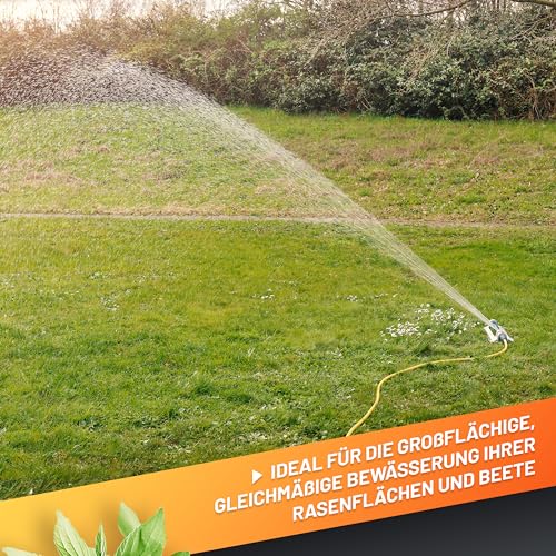 Der GRÜNTEK Metall Oszillations-Rasensprenger bietet dir eine gleichmäßige Bewässerung für große Rasenflächen bis 352 m². Mit flexiblen Einstellmöglichkeiten und robustem Design wird er schnell zu deinem Gartenhelfer für perfekte Rasenpflege.