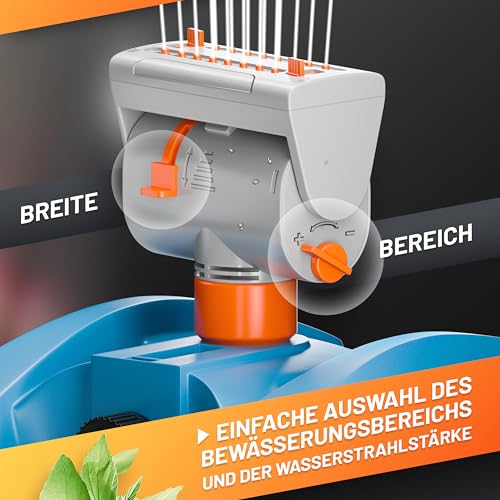 Diese Flexibilität ermöglicht es, den Sprinkler an unterschiedliche Bewässerungsbedürfnisse anzupassen, sei es für einen gerade neu angelegten Rasen oder für ein stark bewachsenes Blumenbeet.