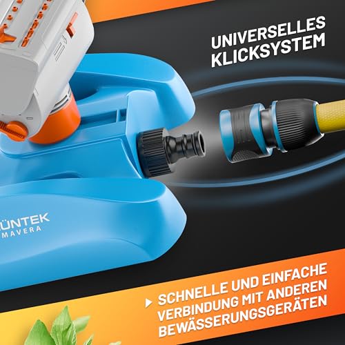 Ein weiteres Plus ist die Benutzerfreundlichkeit des Sprinklers. Dank des universellen Schnellanschlusses gestaltet sich die Installation als unkompliziert und problemlos. Selbst für weniger erfahrene Benutzer ist ein schneller Einsatz möglich.