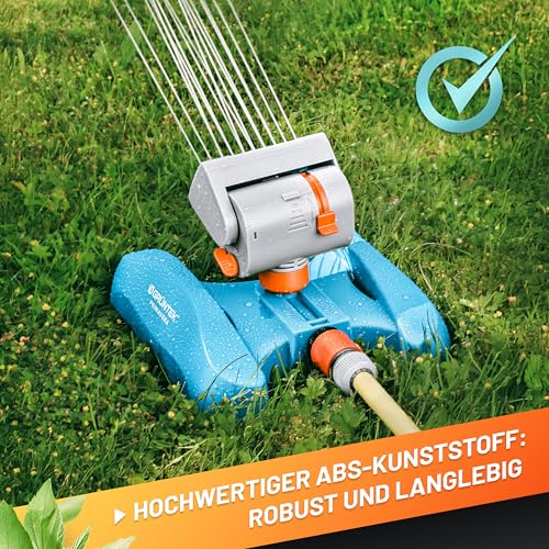 Robuster GRÜNTEK Oszillationssprinkler mit Turbo-Motor – Viereckregner mit 16-Düsen Bewässerungssystem, bruchfester ABS-Kunststoff, für gleichmäßige Beregnung großer Flächen