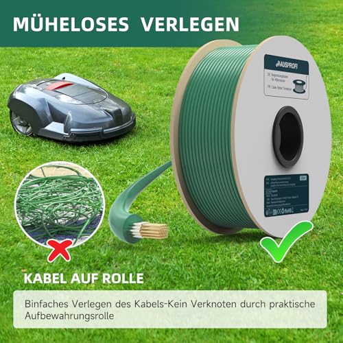| Features | [Präzise und sichere Rasenbegrenzung]: Unser begrenzungskabel mähroboter mit einer Länge von 100 Metern und einem Durchmesser von ø 2,7mm bietet eine zuverlässige Begrenzung für Ihre Rasenfläche. Das stabile Magnetfeld gewährleistet hohe Leitfähigkeit und sorgt für ein reibungsloses Mäherlebnis., [Universelle Kompatibilität]: Unser Begrenzungskabel ist mit allen gängigen Mährobotermarken wie Husqvarn a, Robomow, Bosch, McCulloch, Yardforce, Worx und Viking kompatibel. Nutzen Sie die universale Lösung für Ihr Mährobotersystem. Sie können es auch problemlos mit anderen Originalkabeln ersetzen oder erweitern, um Ihren Bedürfnissen gerecht zu werden., [Hochwertig und langlebig]: Unser rasenmäher begrenzungskabel besteht aus verzinnten Drähten mit flexiblem Kupferkern. Das robuste und witterungsbeständige Material trotzt Regen, Schnee, Frost und Sonneneinstrahlung. Genießen Sie langanhaltende Qualität., [Einfache Installation]: Mit unserer Kunststoffspule verlegen Sie den Begrenzungsdraht mühelos in Ihrem Garten. Die grüne Farbe fügt sich nahtlos in Ihre Rasenfläche ein, während die Ummantelung vor Witterungseinflüssen schützt. Nutzen Sie es ganzjährig in Ihrem Garten., [Umweltfreundlich und sicher]: Unser Mähroboterkabel besteht aus umweltfreundlichen Materialien und ist frei von schädlichen Chemikalien. Es ist sicher für Ihre Familie, Haustiere und die Umwelt. Die präzise Begrenzung durch das Kabel verhindert Schäden an Blumenbeeten, Bäumen oder anderen dekorativen Elementen im Garten. Erleben Sie stressfreies Mähen mit unserem hochwertigen Begrenzungskabel. |
