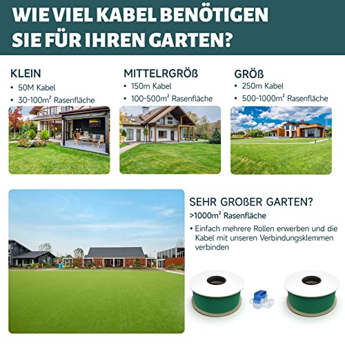 | Features | ✔ Sichere Begrenzung, effizientes Mähen: Mit einer Länge von 250 Metern und einem Durchmesser von ø 2,7mm ist unser Mähroboterkabel die perfekte Wahl zur sicheren Begrenzung Ihrer Rasenfläche. Ein stabiles Magnetfeld gewährleistet eine hohe Leitfähigkeit und damit ein reibungsloses Mäherlebnis., ✔ Universelle Kompatibilität: Unser Begrenzungskabel passt zu allen gängigen Mährobotermarken wie Husqvarna, Gardena, Robomow, Bosch, McCulloch, Yardforce, Worx und Viking. Die universale Lösung für Ihr Mährobotersystem. Sie können es auch jederzeit mit anderen Originalkabeln ersetzen oder erweitern, um Ihre Anforderungen zu erfüllen., ✔ Hohe Qualität und Haltbarkeit: Das Mähroboterkabel besteht aus verzinnten Drähten mit flexiblem Kupferkern. Dank des robusten und witterungsbeständigen Materials widersteht es jeglichen Wetterbedingungen wie Regen, Schnee, Frost oder starker Sonneneinstrahlung. So haben Sie lange Freude daran. Zudem wurde das Kabel von Prüfengel umfassend getestet und mit "sehr gut" bewertet, was zusätzliche Sicherheit und Vertrauen in die Qualität des Produkts bietet., ✔ Einfache Installation: Der flexible Draht lässt sich kinderleicht verlegen und ist auf einer praktischen Spule aufgerollt. Die grüne Farbe fügt sich nahtlos in jede Rasenfläche ein, während die Ummantelung vor Witterungseinflüssen schützt. Dies ermöglicht eine ganzjährige Nutzung im Garten., ✔ Umweltfreundlich und sicher: Unser Mähroboterkabel besteht aus umweltfreundlichen Materialien und ist frei von schädlichen Chemikalien. Es ist somit sicher für Ihre Familie, Haustiere und die Umwelt. Außerdem vermeidet die präzise Begrenzung durch das Kabel Schäden an Blumenbeeten, Bäumen oder anderen dekorativen Elementen im Garten, die durch einen unkontrollierten Mähprozess entstehen könnten. Gönnen Sie sich ein stressfreies Mäherlebnis mit unserem hochwertigen Begrenzungskabel. |
