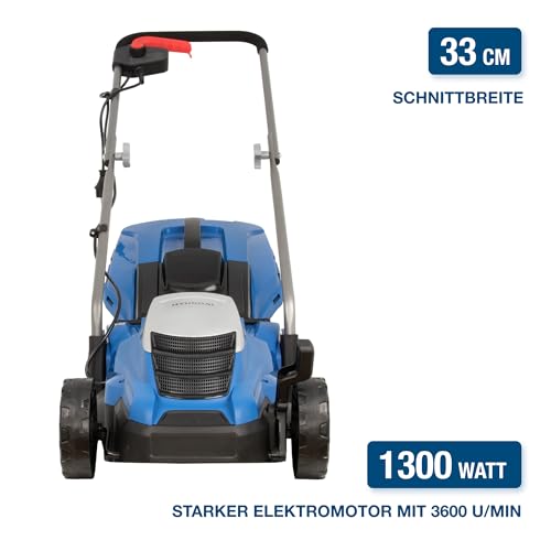 - Starker 1300 W Elektromotor mit 3600 U/Min für effizientes Mähen
