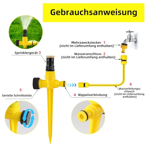 - Sprühbereich von ca. 1 bis 12 Metern, ideal für verschiedene Rasenflächen