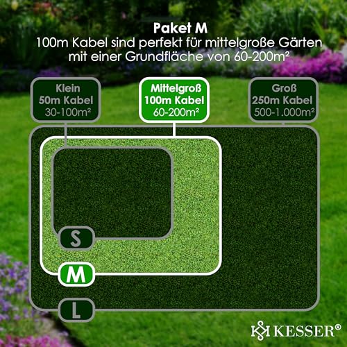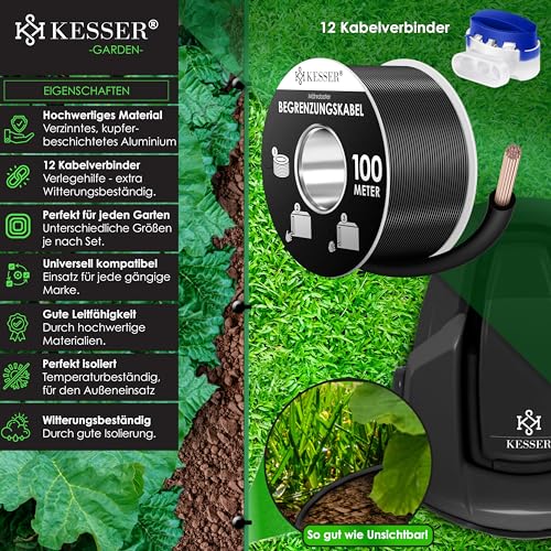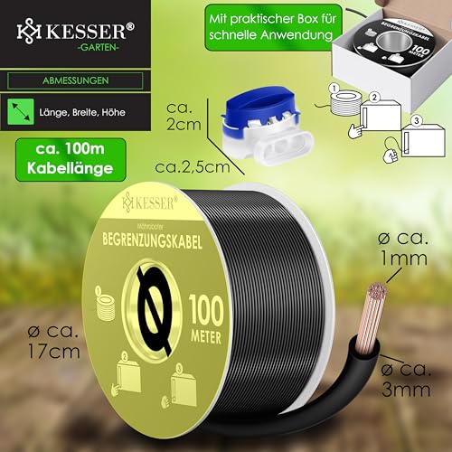 KESSER® Begrenzungskabel 100m + 12 Kabelverbinder für Mähroboter Rasenmäher Rasenroboter Zubehör Set Begrenzungsdraht Universal für Suchkabel kompatibel mit Gardena/Bosch/Worx/Einhell/Honda/ROBOMOW