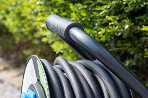 Die praktische Handkurbel dieser Kabeltrommel macht das Aufwickeln von Kabeln zum Kinderspiel. Dies spart Zeit und Aufwand nach der Verwendung des Gerätes. Der ergonomisch geformte Tragegriff ermöglicht zudem einen bequemen Transport, auch wenn die Trommel voll ist.