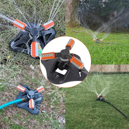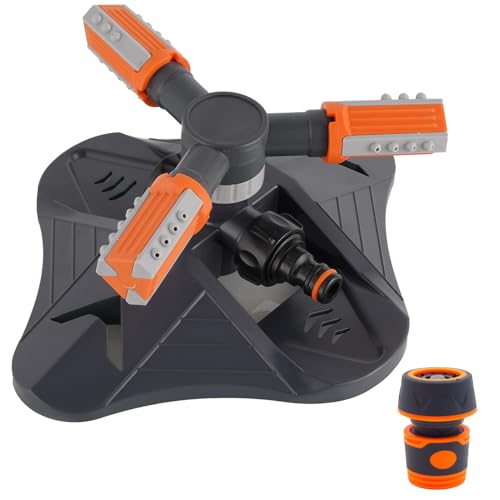 Gartensprinkler Rasensprenger 3Arm Garten Sprenger 360 Grad Automatisch Rotierend Rasen Wassersprinkler mit Schnellkupplung Sprinklerkopf für Bewässerungsanlagen