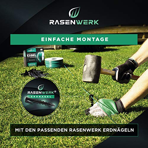 | Features | BEDENKENLOS KOMPATIBEL – Das Begrenzungskabel für Mähroboter eignet sich sowohl als Leitkabel als auch als Suchkabel. Der Begrenzungsdraht ist kompatibel mit allen bekannten Markenherstellern., SIMPLE HANDHABUNG – Mit unserer Kunststoffspule verlegen Sie den Begrenzungsdraht mühelos in Ihrem Garten. Wir garantieren Ihnen eine knotenlose und frustfreie Installation., OPTIMALE LEITFÄHIGKEIT – Die verzinnten Drähte mit flexiblem Kupferkern erzeugen ein sehr stabiles Magnetfeld. Dies sorgt für eine hohe Leitfähigkeit, sodass die Sensoren Ihres Mähroboters bestens den Weg entlang der Rasenkante finden., ROBUSTE QUALITÄT – Entworfen für Outdoor-Anwendung ist unser Begrenzungs-Draht UV-beständig und wetterfest. Er erfüllt höchste Qualitätsstandards für beste Leistung und optimale Leitfähigkeit., RASENWERK VERSPRECHEN – Wir haben es uns zur Aufgabe gemacht jeden einzelnen Kunden zufrieden zu stellen – mit der Qualität unserer Produkte und mit unserem Kundenservice! |