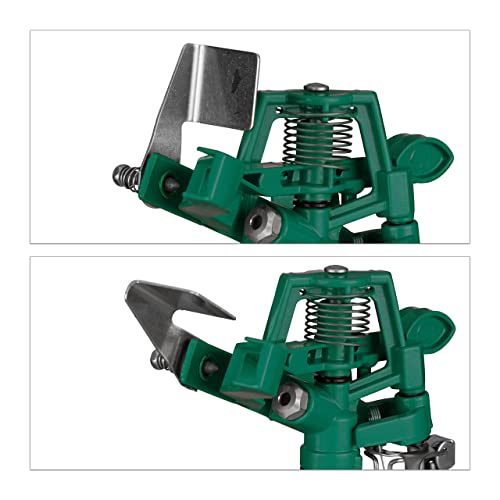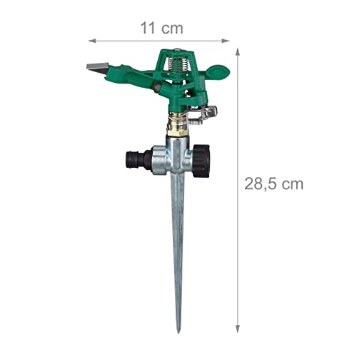 Relaxdays Pulsationssprenger, Gartenbewässerung, 360° Sektorenregner, 12 m Reichweite, Rasensprenger, Metall, grün, 28,5 x 11 x 6 cm