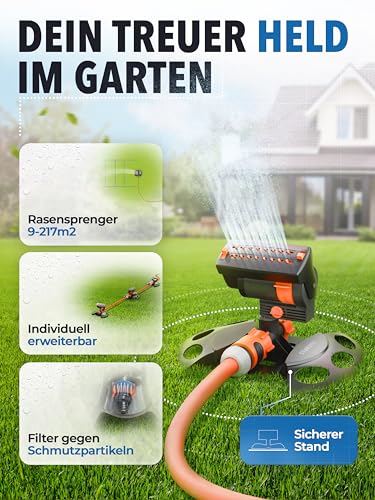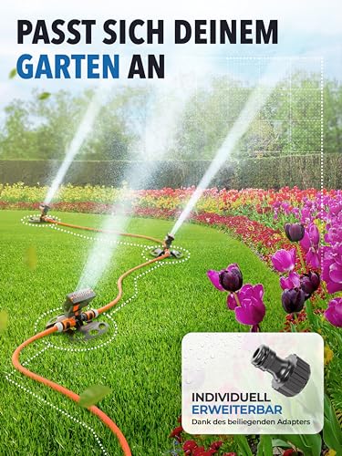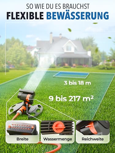 - Flexible Sprengweite für verschiedene Gartenflächen.