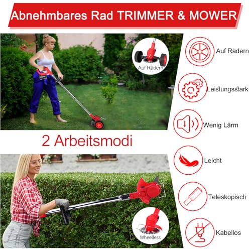 Xbzzgmg Akku-Rasentrimmer 21V mit 2 Akkus und 3 Klingen