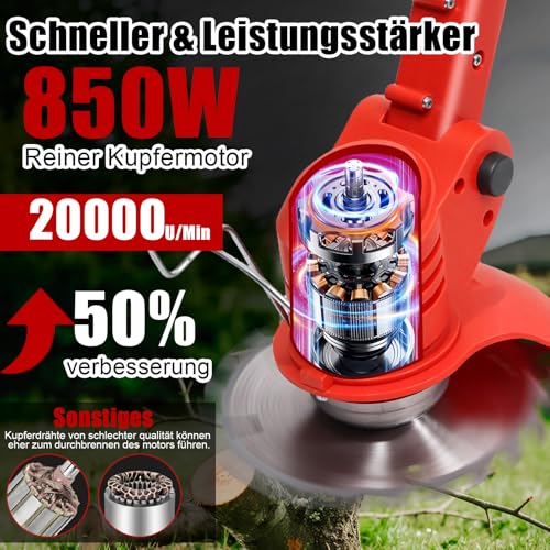 Der Xbzzgmg Akku-Rasentrimmer überzeugt durch seine starke Leistung. Der Motor mit einer maximalen Leistung von 800 Watt sorgt dafür, dass auch dickes und hartnäckiges Unkraut mühelos entfernt werden kann. In Kombination mit den drei verschiedenen Klingentypen lässt sich die Leistung optimal an die jeweilige Aufgabe anpassen.