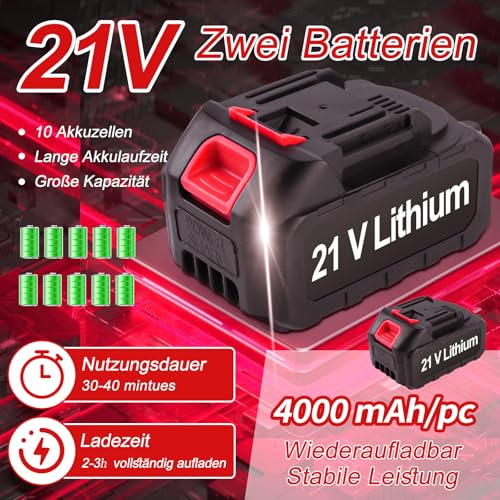 - Inklusive zwei 4000 mAh Lithium-Ionen-Akkus für eine Laufzeit von bis zu 60 Minuten.