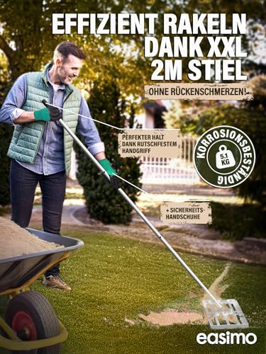 Der easimo Rasenrakel ist dein perfekter Gartenhelfer! Mit robustem Stahl und ergonomischem Design sorgt er für eine ebenmäßige Rasenfläche. Ideal für effizientes Arbeiten, schont er deinen Rücken und ermöglicht einfache Pflege deines Gartens.