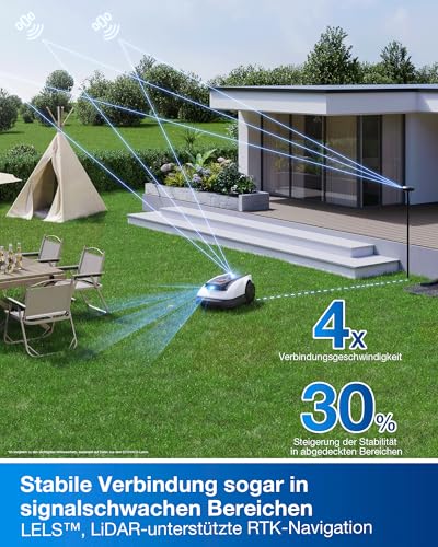 Im Vergleich zu herkömmlichen Mährobotern, die oft auf Ultraschall- oder einfache Sensorsysteme angewiesen sind, bietet der Goat eine deutlich verbesserte Leistung, insbesondere in Bereichen mit vielen Hindernissen oder eingeschränkten Empfangsbedingungen.